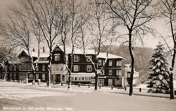 Noch auf dem Nachhauseweg grübelte ich über Eberhards Logik nach. Wir nahmen jetzt Kurs auf die Wohnung meiner Großeltern in der Herzog-Wilhelm-Strasse. Hier traf sich traditionsgemäß die Stammfamilie zu Weihnachtsandacht und Würstchen. Inzwischen fiel Schnee in dicken Flocken herab, legte sich über die Wege und Straßen und verlieh dem Ort ein weihnachtliches Aussehen. Aus etlichen Wohnzimmerfenstern schimmerte Kerzenlicht von den Weihnachtsbäumen durch, in ihrer Wirkung nur übertroffen vom riesigen Lichterbaum vor dem Sanatorium Dr.Schroeder. Jetzt war auch das Schaufenster von Feinkost Zutz strahlend hell erleuchtet. Wir verweilten vor der Krippe aus Weihnachtsgebäck, Zuckerwerk und Wattebäuschen und bestaunten die kleinen Figuren und Tiere. Endlich war mir feierlich zumute. geschichteJetzt war es richtig Heiligabend.