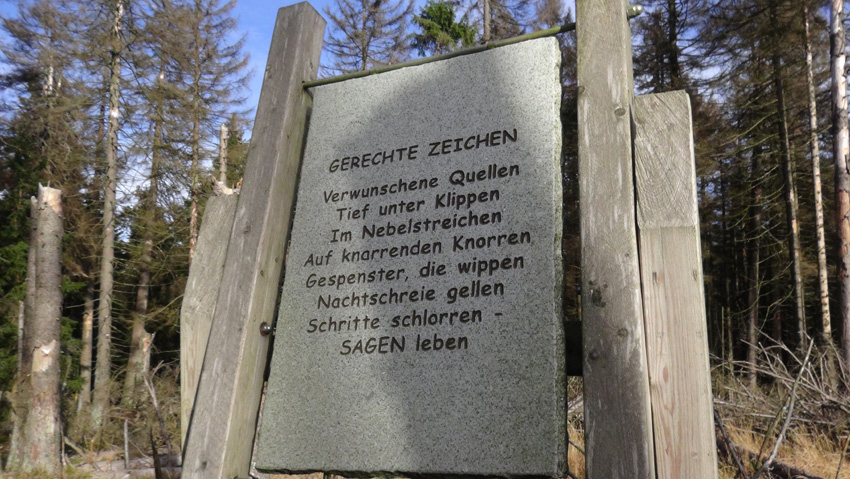 Die Kraft der Natur wurde in früheren Zeiten oftmals umgedeutet. Unsere Vorfahren vermuteten Geister und andere rätselhafte Erscheinungen im dunklen Walde. Hinter der grünen Undurchdringbarkeit und absterbenden Fichten erblickten sie bedrohliche Gestalten, die Monstern, Bestien und Kobolden glichen. Ängstlichkeit schafft Fabeln und Mythen. Kein Wunder also, dass der Harz schon früh als sagenumwoben galt.