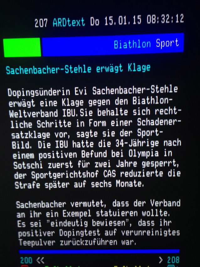 Bei Olympia waren leistungssteigernde Stimulanzien anfangs kein Thema. Am Ende kochten doch mehrere Fälle hoch.Wie allseits bekannt, vertilgte unsere Evi Sachenbacher einen ungeprüften Proteinriegel und trank dazu einen Gute-Laune-Tee. Mit niederschmetternden Folgen. Die Falschernährung mit Nahrungsergänzungsmittel veränderten ihre Blutwerte. Und zwar derart drastisch, dass aufgrund der A-Probe sogar ein dringender Dopingvorwurf besteht. Konsequenz: Evi wurde von weiteren Wettkämpfen ausgeschlossen. Die Athletin versteht die Welt nicht mehr und erklärte: Hallo, Nahrungsergänzungsmittel!!! Und stellte Strafanzeige gegen unbekannt. Die Polizei führte eine Hausdurchsuchung durch und verhaftete den verdächtigen Teebeutel. Ebenfalls verdächtig ist ein mysteriöser Mentaltrainer, der Zugriff auf die Teekammer haben soll. Am Ende dürfte der Dopingfall die deutsche Justiz beschäftigen.