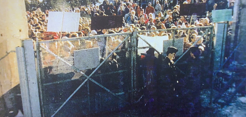 v gegen die Befestigung des Grenzüberganges, bis die verantwortlichen Kommandanten völlig überfordert von der Wucht ihren Grenzsoldaten den Befehl erteilen, die Tore zu öffnen. Foto Damit fiel die Mauer, wird es später heißen.