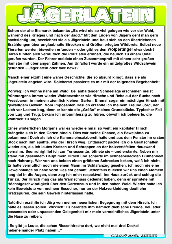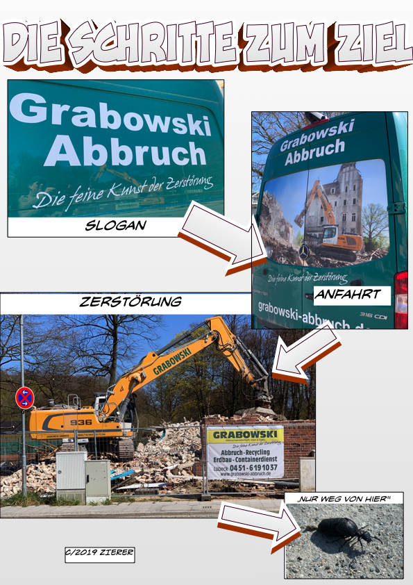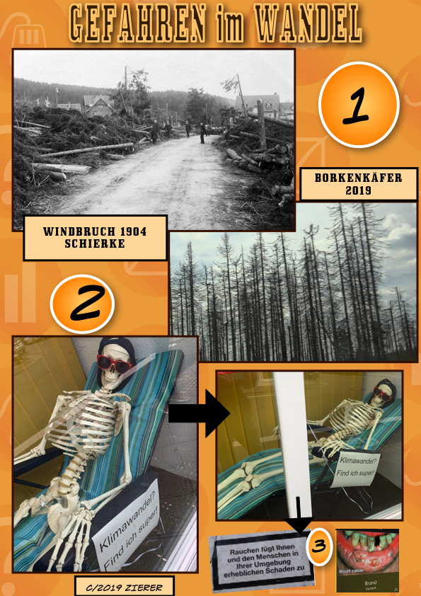 Morgens in Braunlage - es gießt in Strömen. Auf dem Weg zum Bäcker begegne ich einer Kolonne Borkenkäfer. Na, frage ich, auf dem Weg zur Zerstörung? – Wir geben uns größte Mühe, antwortet der Truppführer. Heute marschieren wir zum Wurmberg. - Aber es regnet doch, ist Nässe nicht euer größter Feind? – Die gesamte Kolonne bricht in höhnisches Gelächter aus, bis der Truppführer sie mit strengem Blick und steil aufgestellten Fühlern stoppt. Hör mal, wendet er sich an mich, wir Borkenkäfer gestalten den Harz der Zukunft. Die Rahmenbedingungen dafür sind prächtig, so gut wie zuletzt um 1800. Das bisschen Regen hindert nicht. Die Fichten bräuchten die dreifache Menge, damit sie genügend Harz produzieren können, um uns nachhaltig abzuwehren.