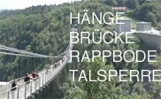ahe Rübeland eine solche Attraktion eingeweiht. Bis zu 210 Personen gleichzeitig können auf der stets leicht swingenden Brücke eine sensationelle Aussicht genießen oder bei Nebel ganz außergewöhnliche Sinneswahrnehmungen erleben. Wem der Spaziergang über den 120cm breiten Laufrost mit Blick in die Tiefe, gesichert durch das 130cm hohe Geländer mit Edelstahlnetzen, nicht ausreicht, für den besteht in der Brückenmitte die Möglichkeit zum GigaSwing: einen spektakulären Pendelsprung. 75 Meter freier Fall, Adrenalin in Höchstdosis. Wie es heißt: einzigartig in Europa. Siehe auch Video ...