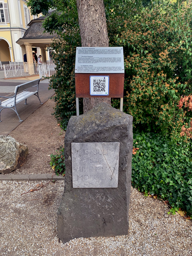 Ein Gedenkstein auf der Kurpromenade von Bad Ems erinnert an den Ort dieser weitreichenden Begegnung klick -- Das Denkmal fällt jedoch im Vergleich zum Museum, das zu Ehren eines weiteren weltweiten Faszinosums hier eröffnet wurde, eher bescheiden aus.