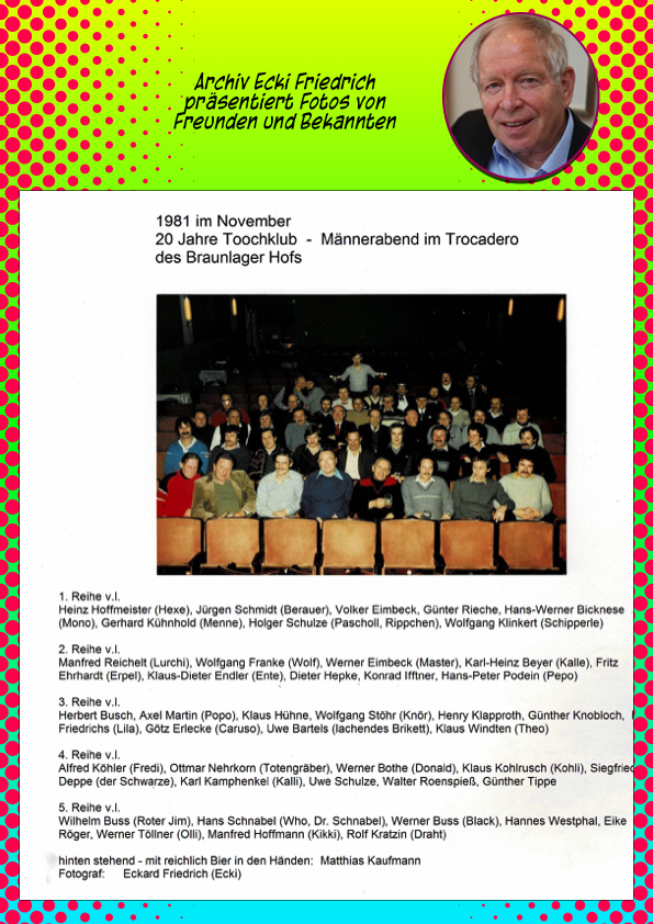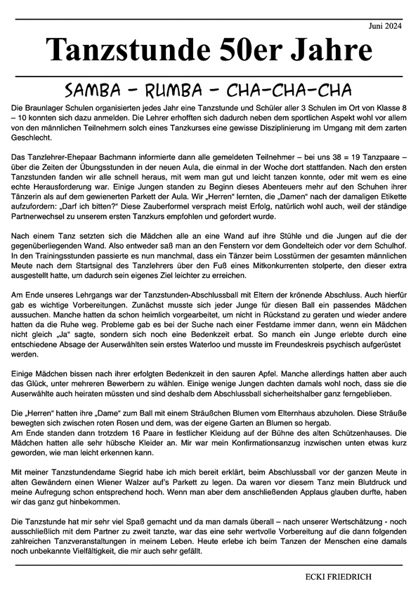 Und so verwundert nicht, dass man gern an die heitere Kinder- und Jugendzeit erinnert wird, mit ihren guten Freundschaften, den gefüllten Bechern und dem Verliebtsein. (bitte Foto anklicken pdf.Datei)