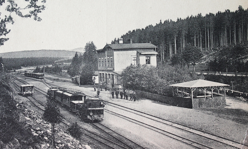 Wie hier auf einem Hochsitz unmittelbar an der ehemaligen Gleisstrecke von Brunnenbachsmühle nach Tanne.
