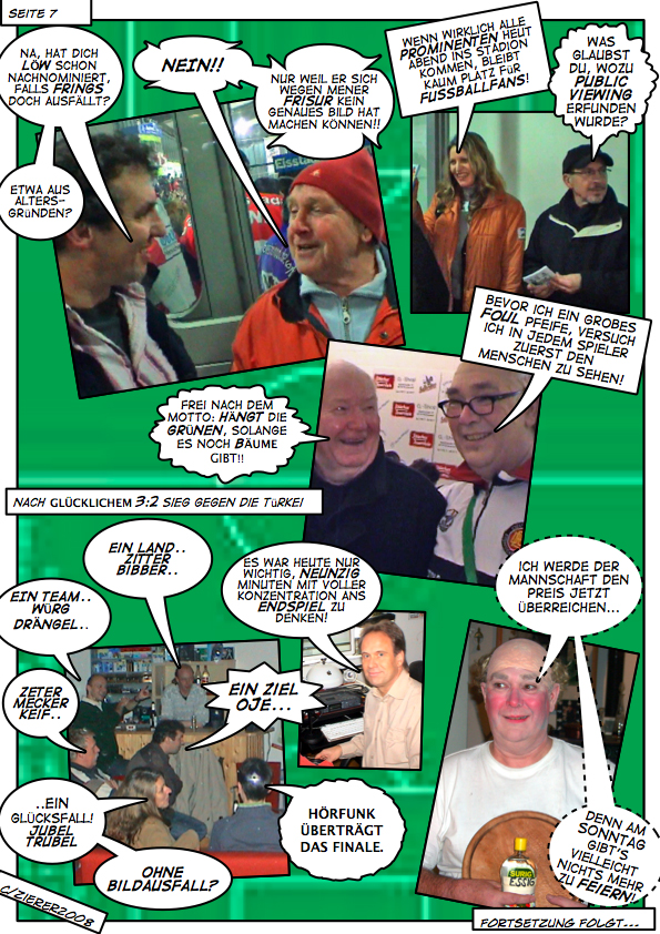 Der Comic bezieht sich auf die EM 2008. Im Endspiel besiegte Spanien unsere Elf mit 1:0