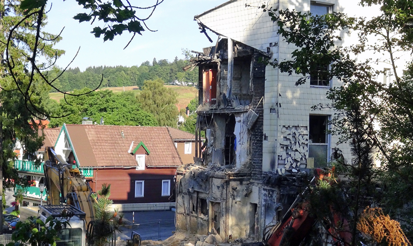 Hotel Rögener nach dem Teilabriss. Neue interessante Sichtachsen sind entstanden wie einst beim "Hirschen".