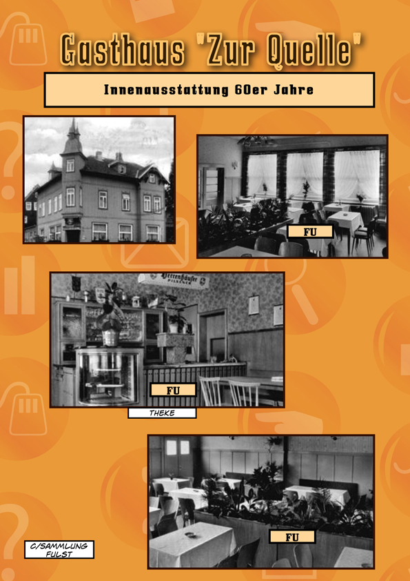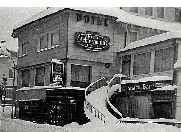 Daneben gehörte auch eine bunte Palette an Gaststätten und Kneipen zum Stadtbild. Insbesondere für Jugendliche und Heranwachsende besaß die lebhafte Kneipenszene rund um die Kreuzung Herzog-Wilhelm-, Lauterberger- und Bahnhofstrasse eine magische Anziehungskraft - und wurde vom Volksmund wegen der damit verbundenen "Untergangsgefahr" folgerichtig auch Bermuda-Dreieck genannt! Das originäre Milieu bestand aus den berühmt-berüchtigten Kellerlokalen "Herkules (SlowDown)" Foto und "Achtermann" Foto, ferner Grete Tippes "Zur Wiederkehr" mit einem eigenen Raum für Musikbox und Flipperautomat sowie Bernd Ecksteins "Letzte Station". Glanzpunkt und Krönung war jedoch die "Neue Welt" F1 -- F2 , die zum Gebäudekomplex der Gaststätte "Zur Quelle" (Foto1) (Foto2) gehörte. Ursprünglich als Südsee-Tanzklub konzipiert, kehrte mit dem "Beat" schnell ein neuer Musikstil den alten Staub von den Wänden! Das Live-Erlebnis sorgte bei damaligen Generation für Begeisterung und wurde bald zum Inbegriff eines neuen Lebensgefühls. Und das mitten im Harz - ein absolutes Novum!! Der gute Ruf reichte in Bälde über unsere Stadtgrenzenn hinaus und zog sogar Besucher aus den großen Metropolen wie Hannover und Hamburg an. Jetzt trug die "Neue Welt" ihren Namen zu Recht.