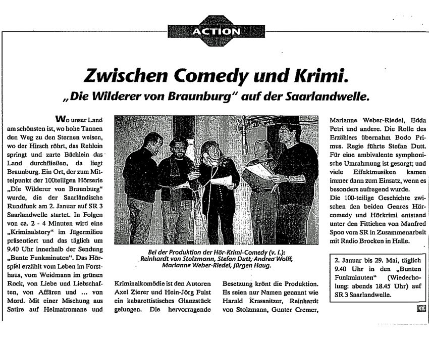 Die insgesamt 100 Folgen umfassende Radioserie von Axel Zierer und Heinz-Jörg Fulst wurde beim Saarländischen Rundfunk in Zusammenarbeit mit Radio Brocken produziert und von Oktober 1994 bis März 1995 ausgestrahlt. Die Geschichte, angesiedelt zwischen Comedy und Krimi, entführt den Hörer in eine virtuelle Welt von Wirklichkeit und Illusion.